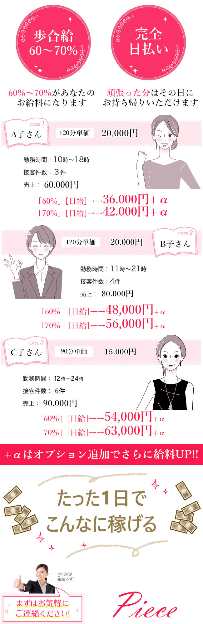 時間を有効活用し、楽しく仕事して沢山稼いでいただいてプライベートを充実してもらいたい